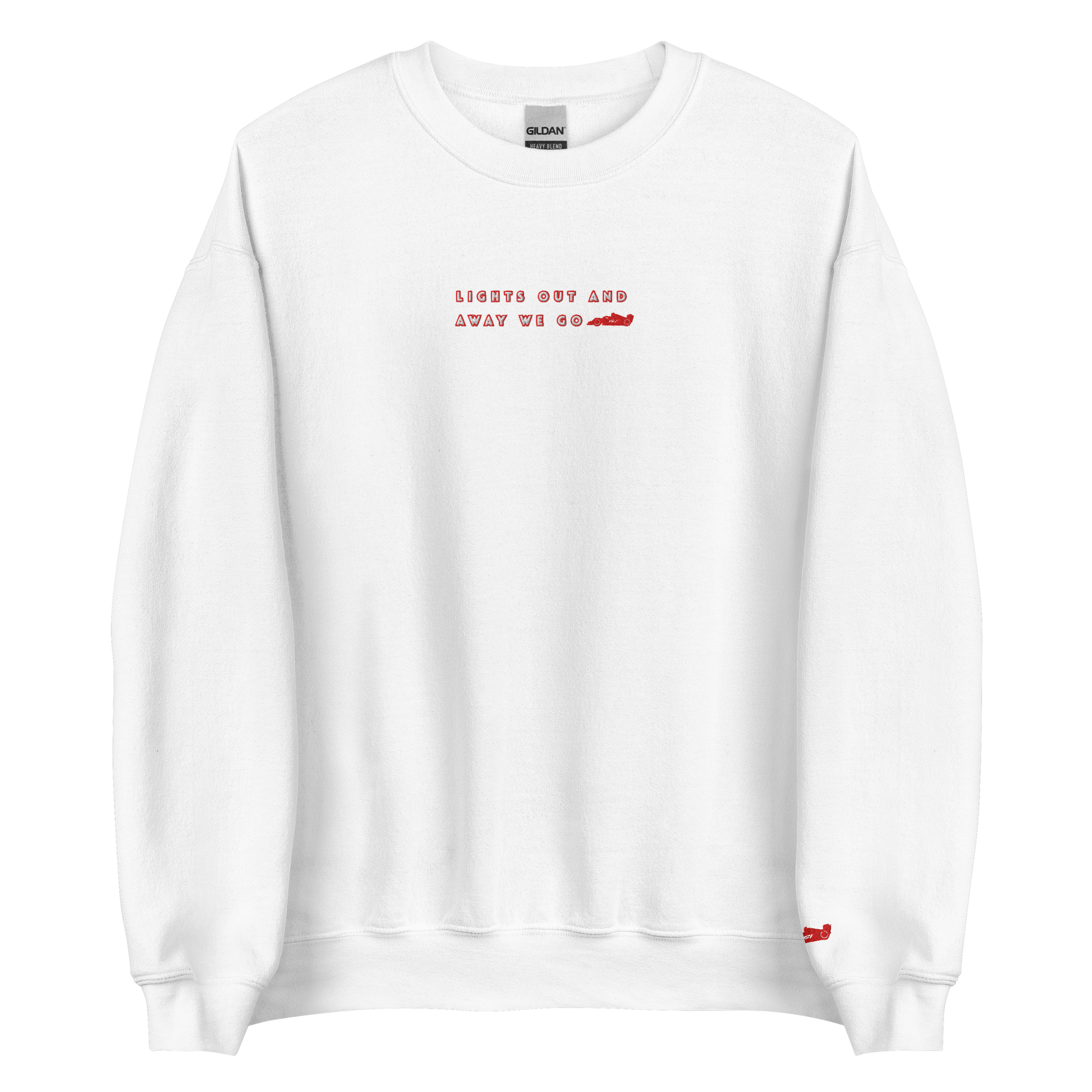 Comfortable crewneck with embroidered design on the front and on one sleeve.